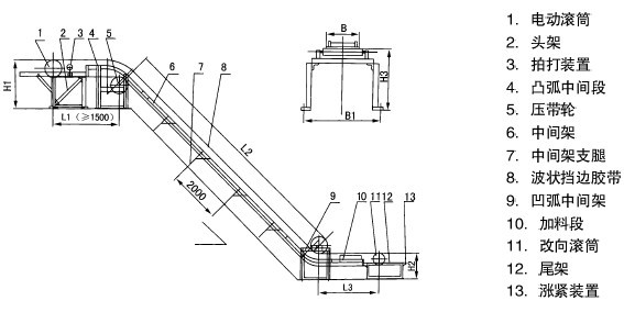 (2)輸送大塊物料時(shí),擋邊應(yīng)選用偏高的;也可不增大帶寬和擋邊,用提高帶速(1.25m/s、1.6m/s、2m/s)的辦法提高輸送量;